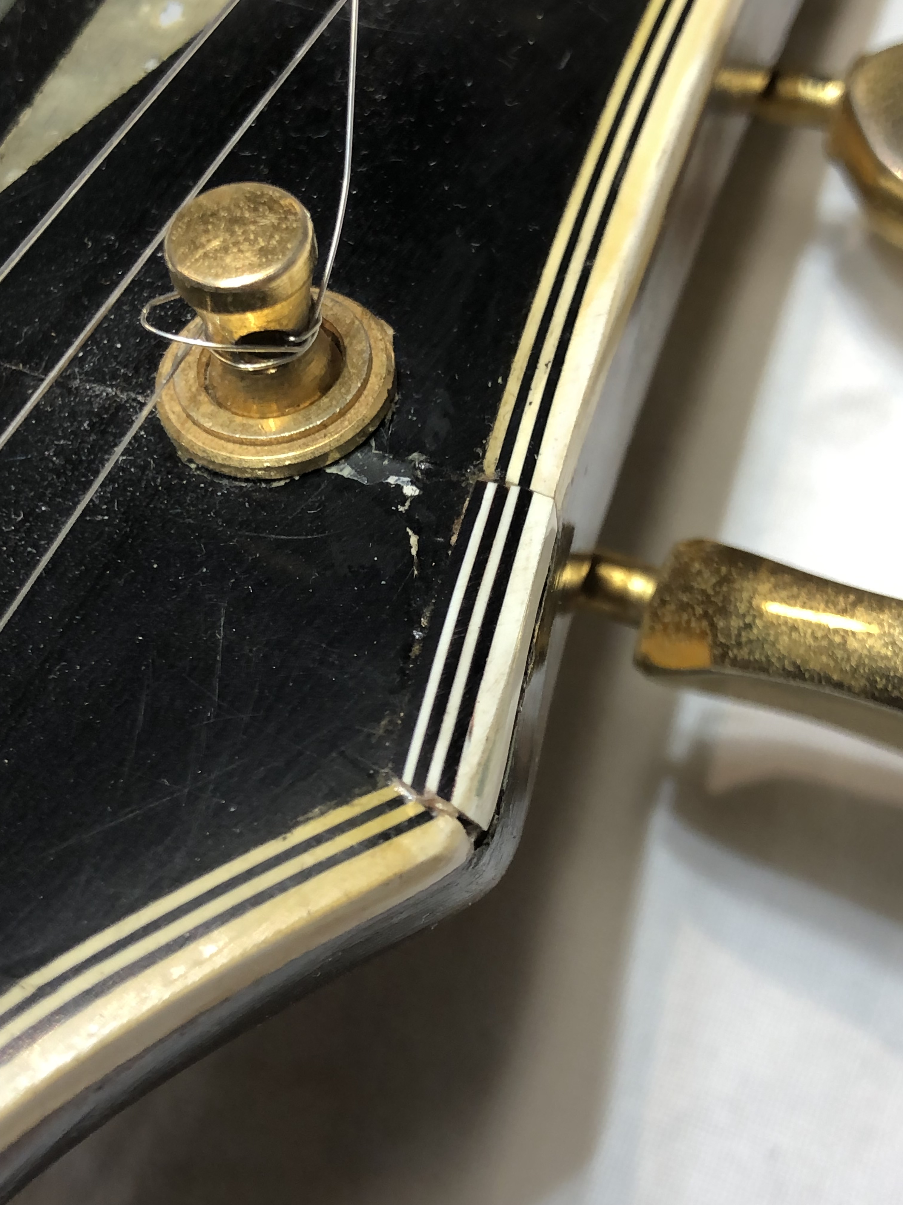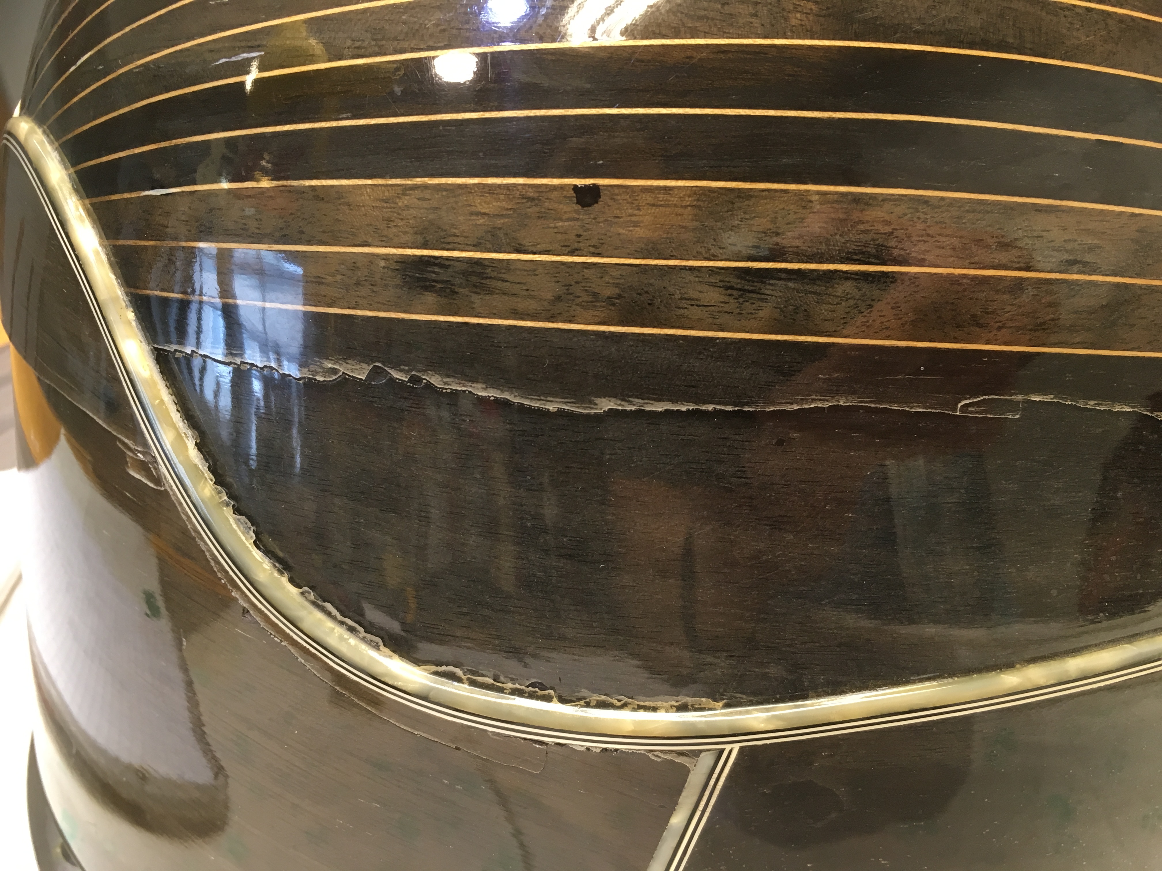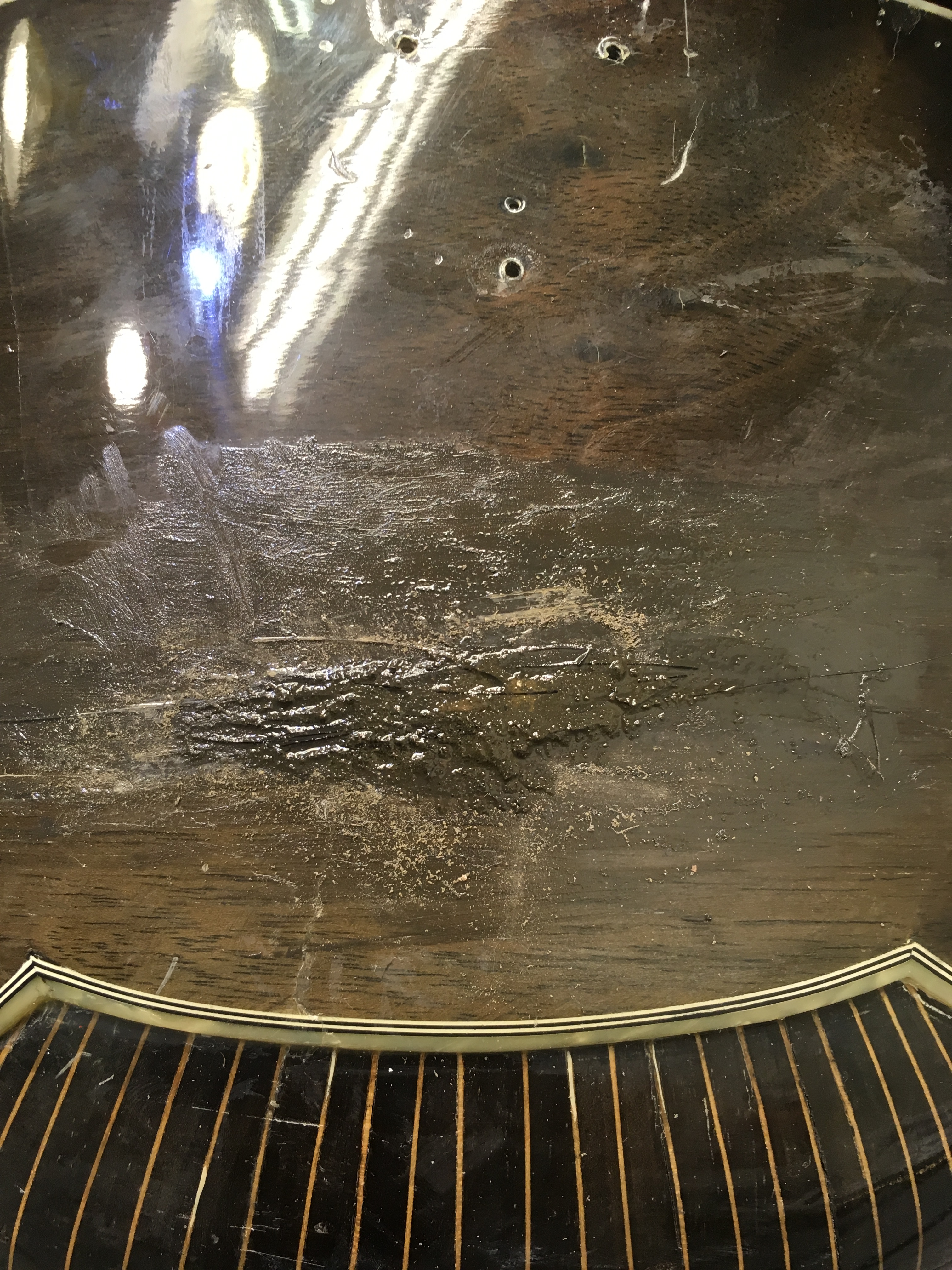 Maali oli pahasti lohkeillut vaikka kitara ei ollut vielä montakaan vuotta vanha.