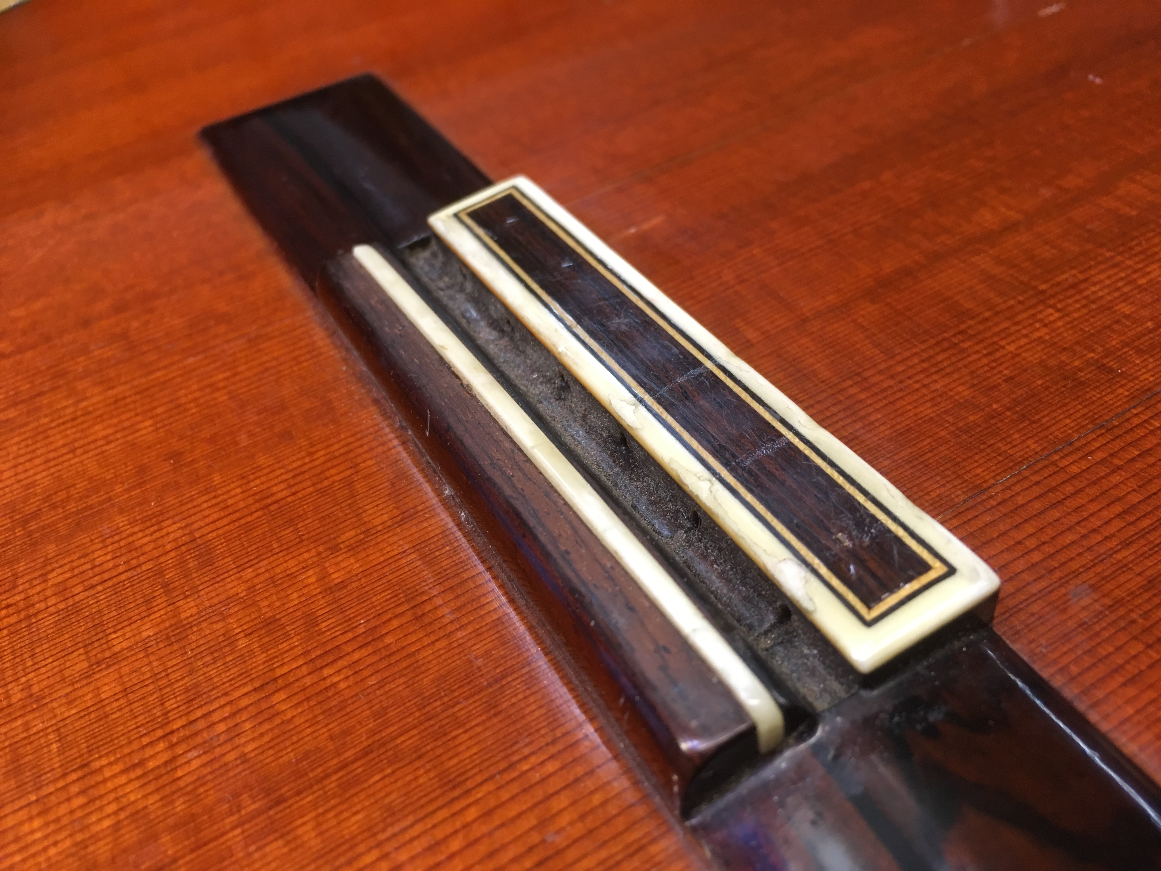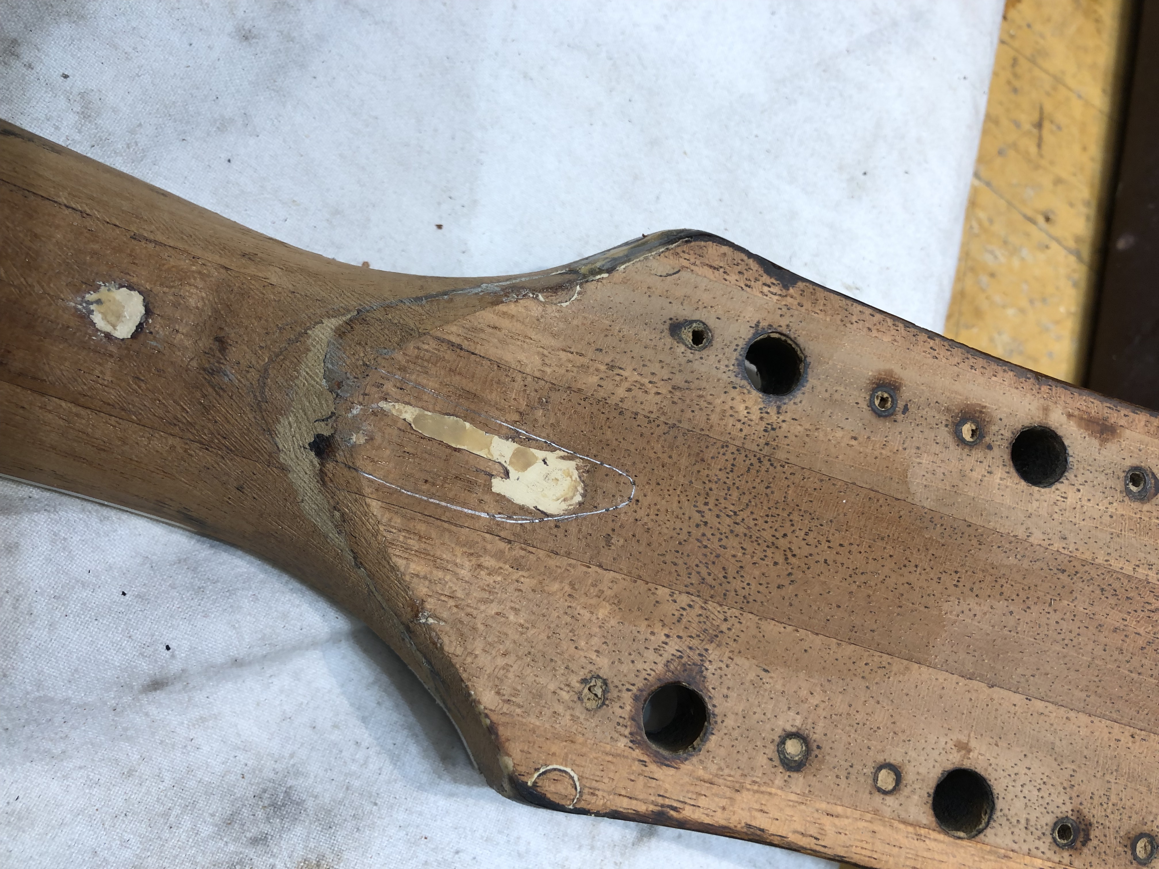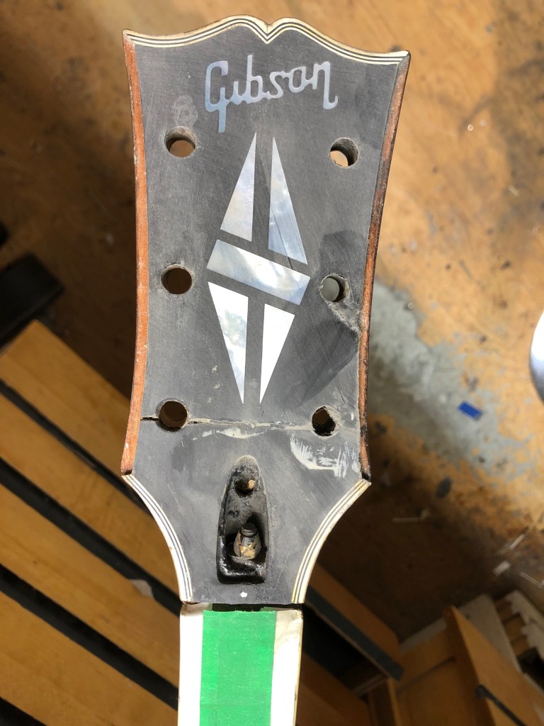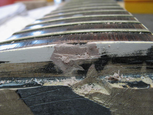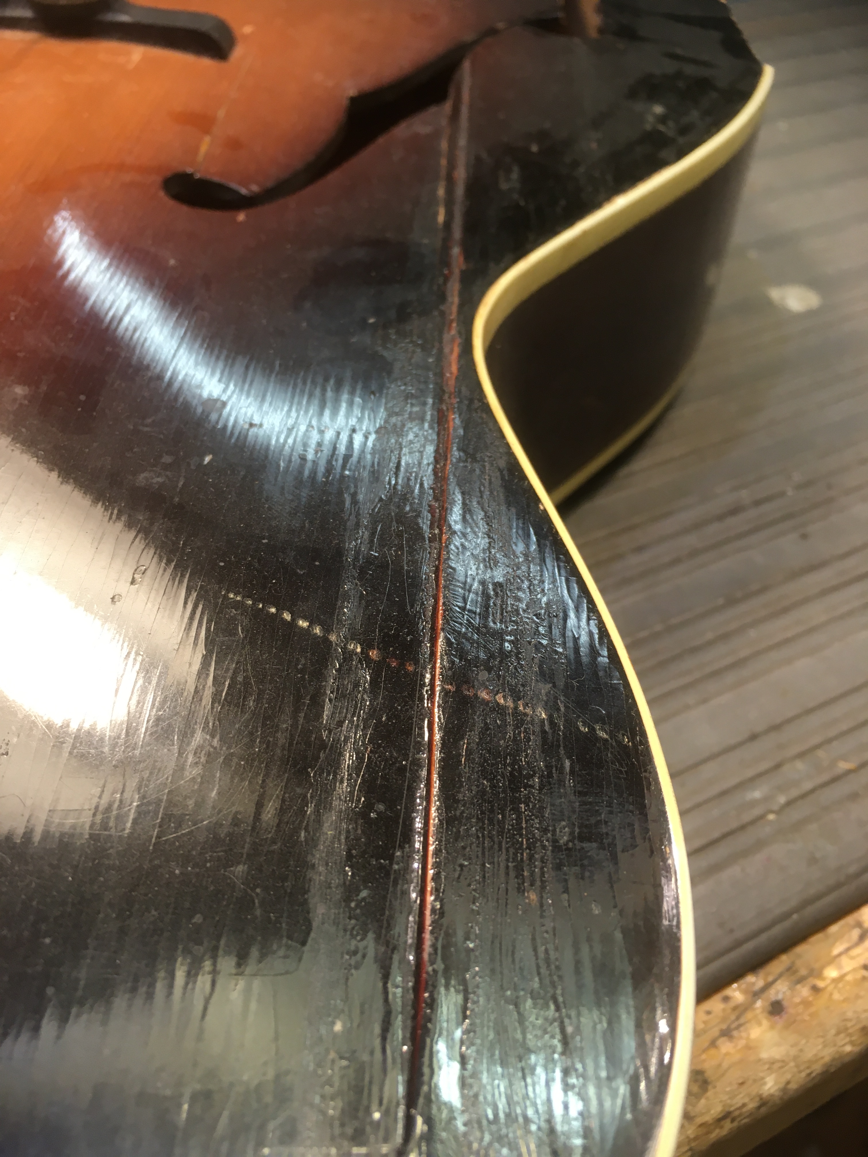 Maali oli pahasti lohkeillut vaikka kitara ei ollut vielä montakaan vuotta vanha.