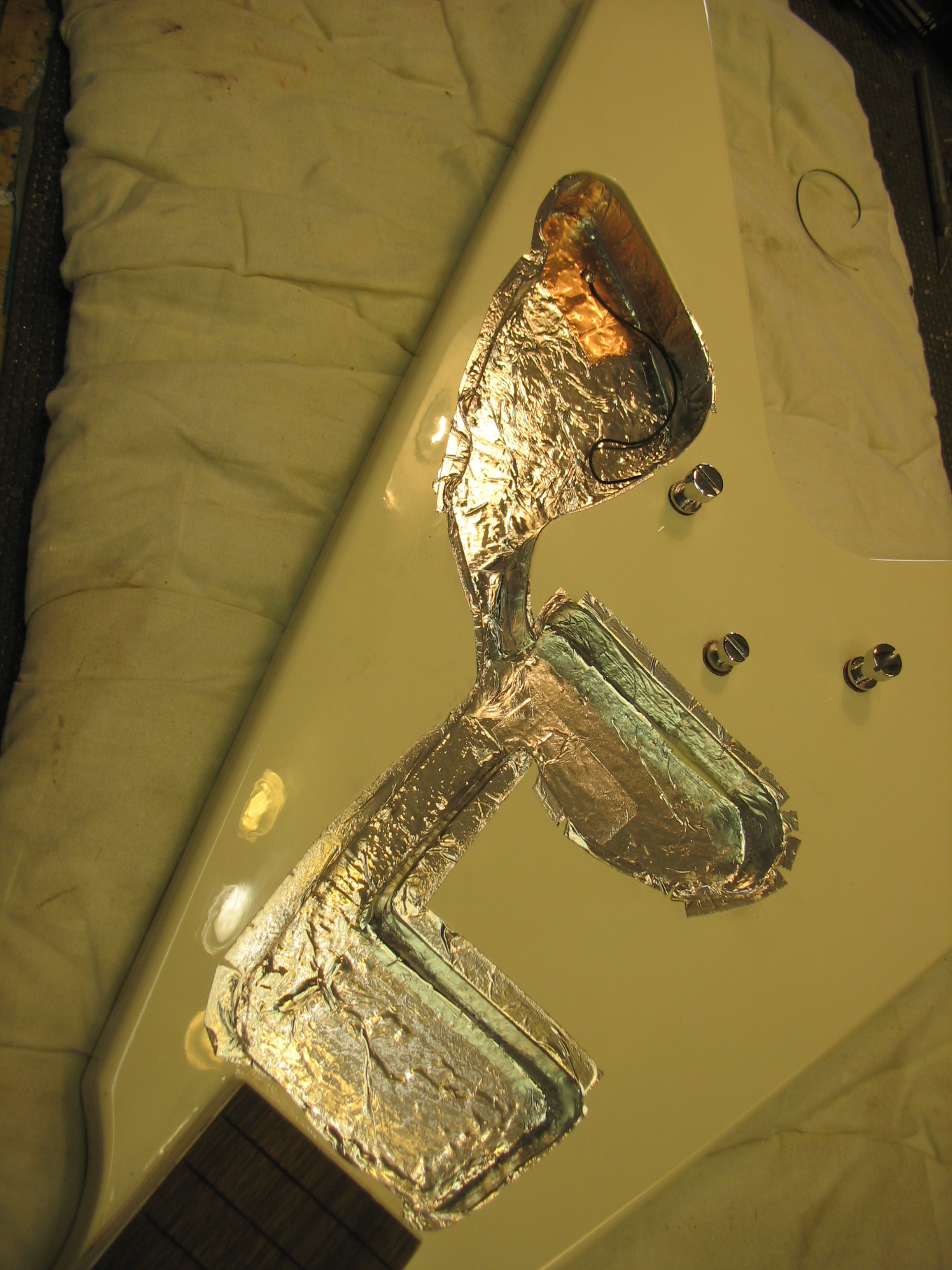 Kitaraan tehtiin vielä häiriösuojaus alumiinifoliolla.