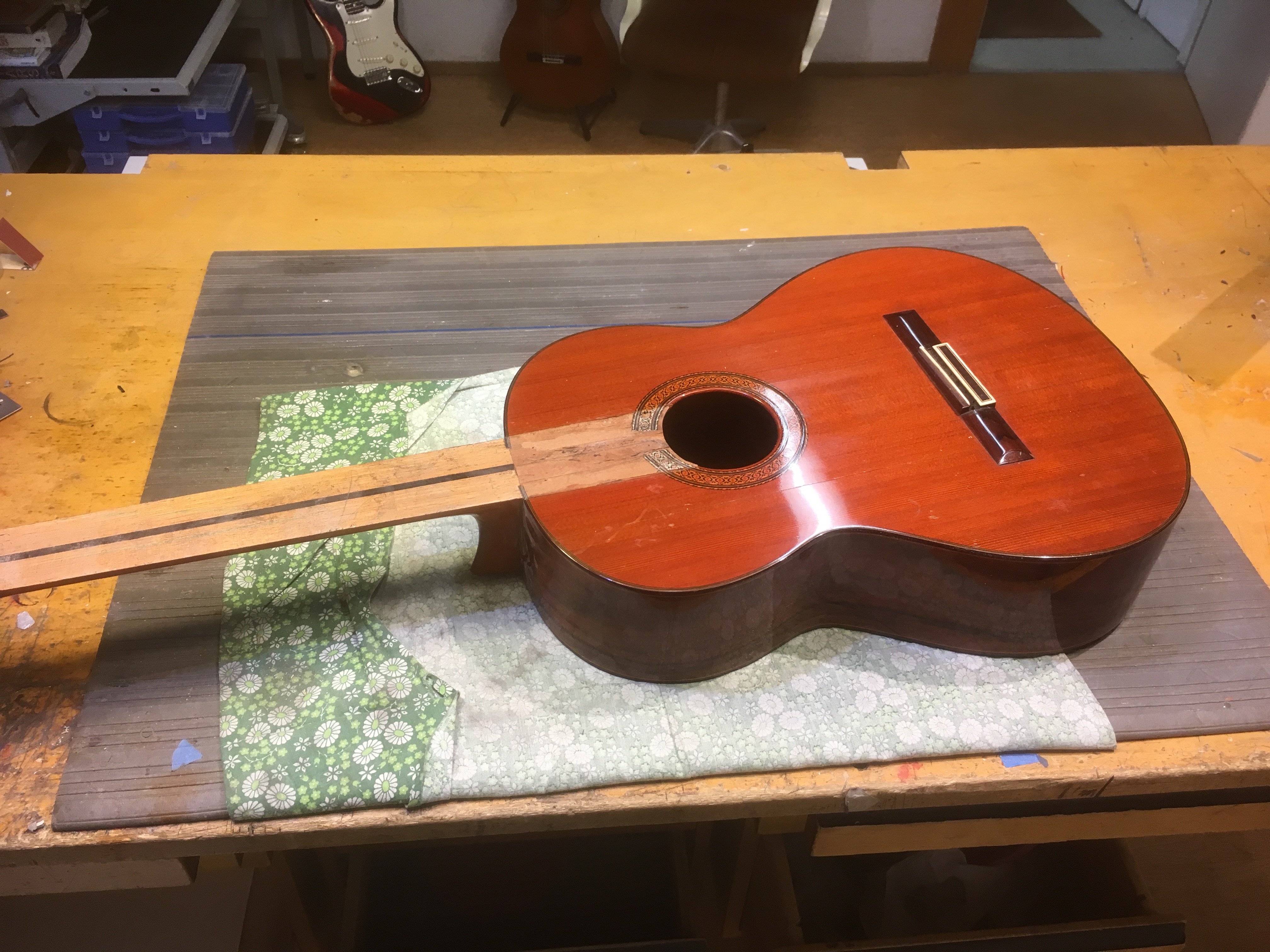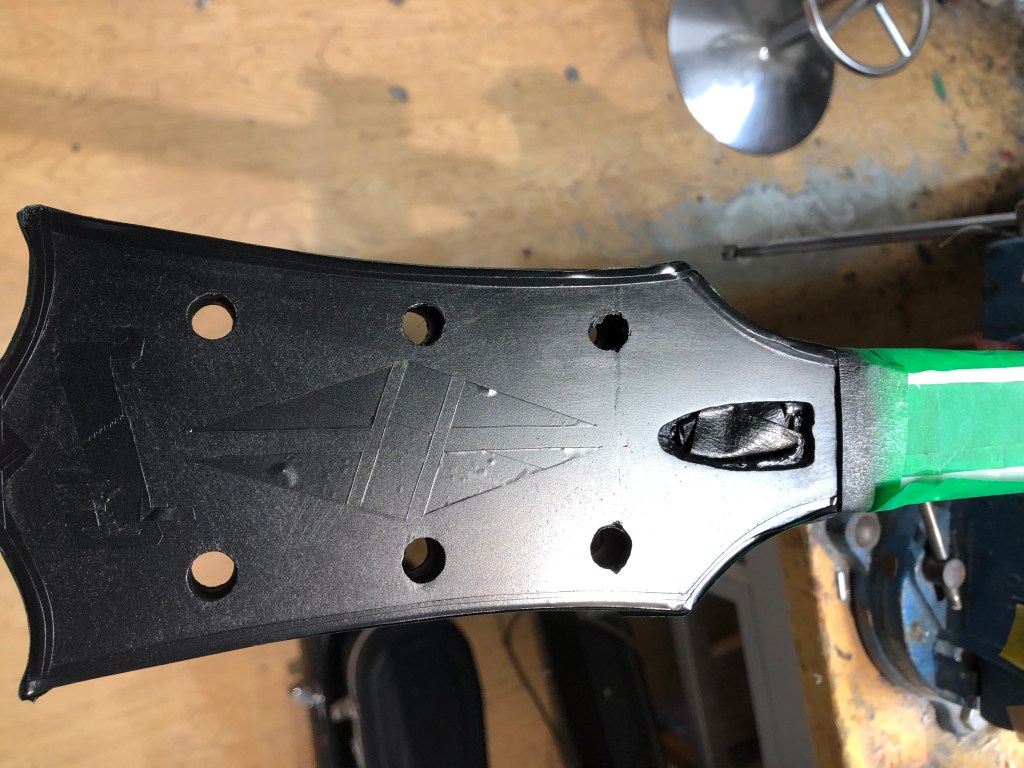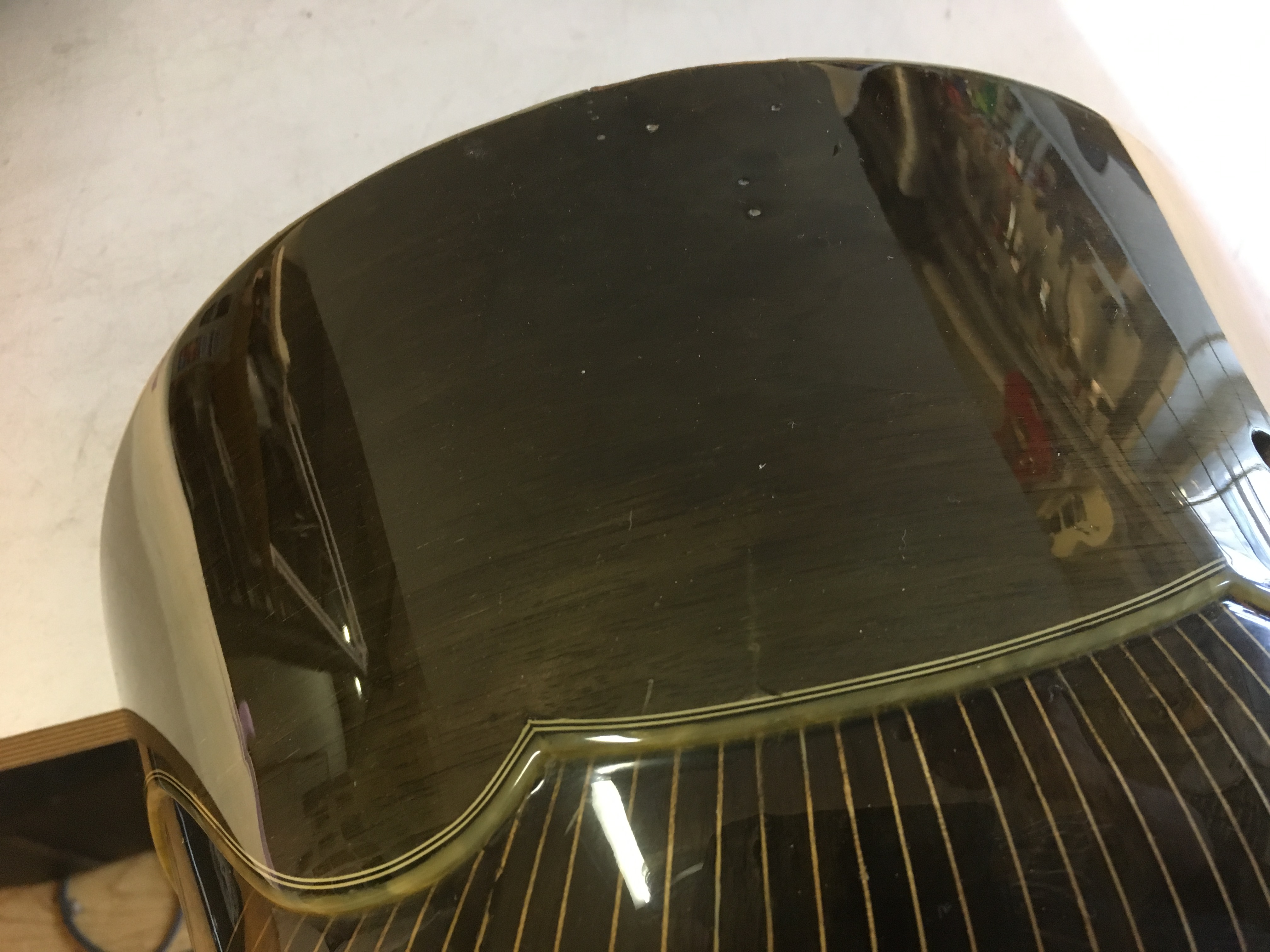 Maalin päälle ruiskutettiin 5 kerrosta polyuretaanilakkaa. Lakka ei ole välttämätöntä, mutta suojaa kitaraa sekä tuo lisää kiiltoa. Viimeisen lakkakerroksen kuivuttua alkaa varsinainen työ.