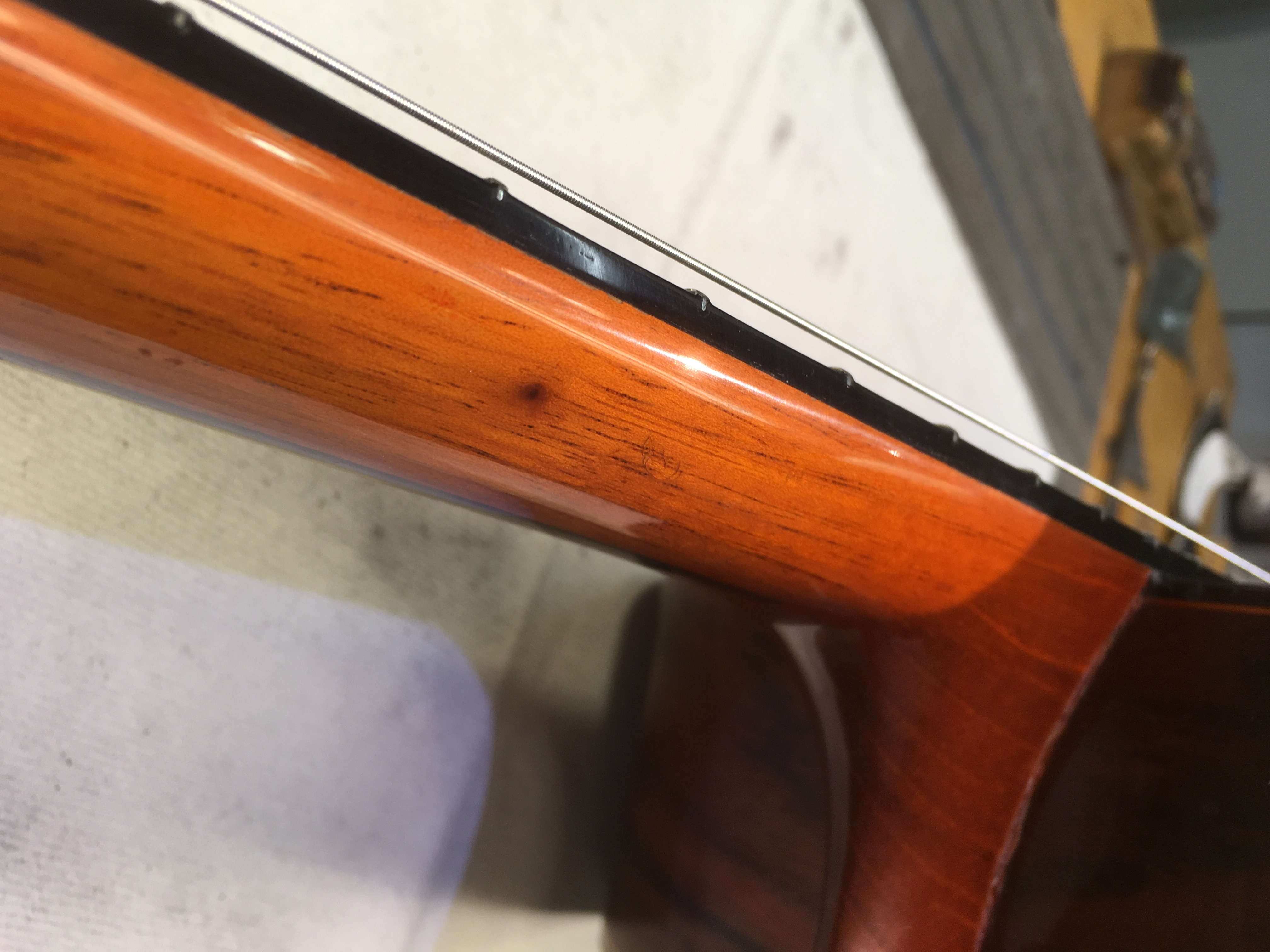 Jossain mainoksessa käytetty termi ”thin nitrocellulose finish” on kyllä täysin virheellinen. Rehellinen kuvaus olisi jotain tälläista: ”pintakäsittelynä on paksu kerros polyesterlakkaa jonka päällä on ohut kerros huonolaatuista maalia joka muistuttaa enemmän akryylia kuin nitroselluloosaa”! En tiedä, onko kyseessä vain joku huono maalierä vai ovatko kaikki Knopfler-Stratocasterit tällaisia.