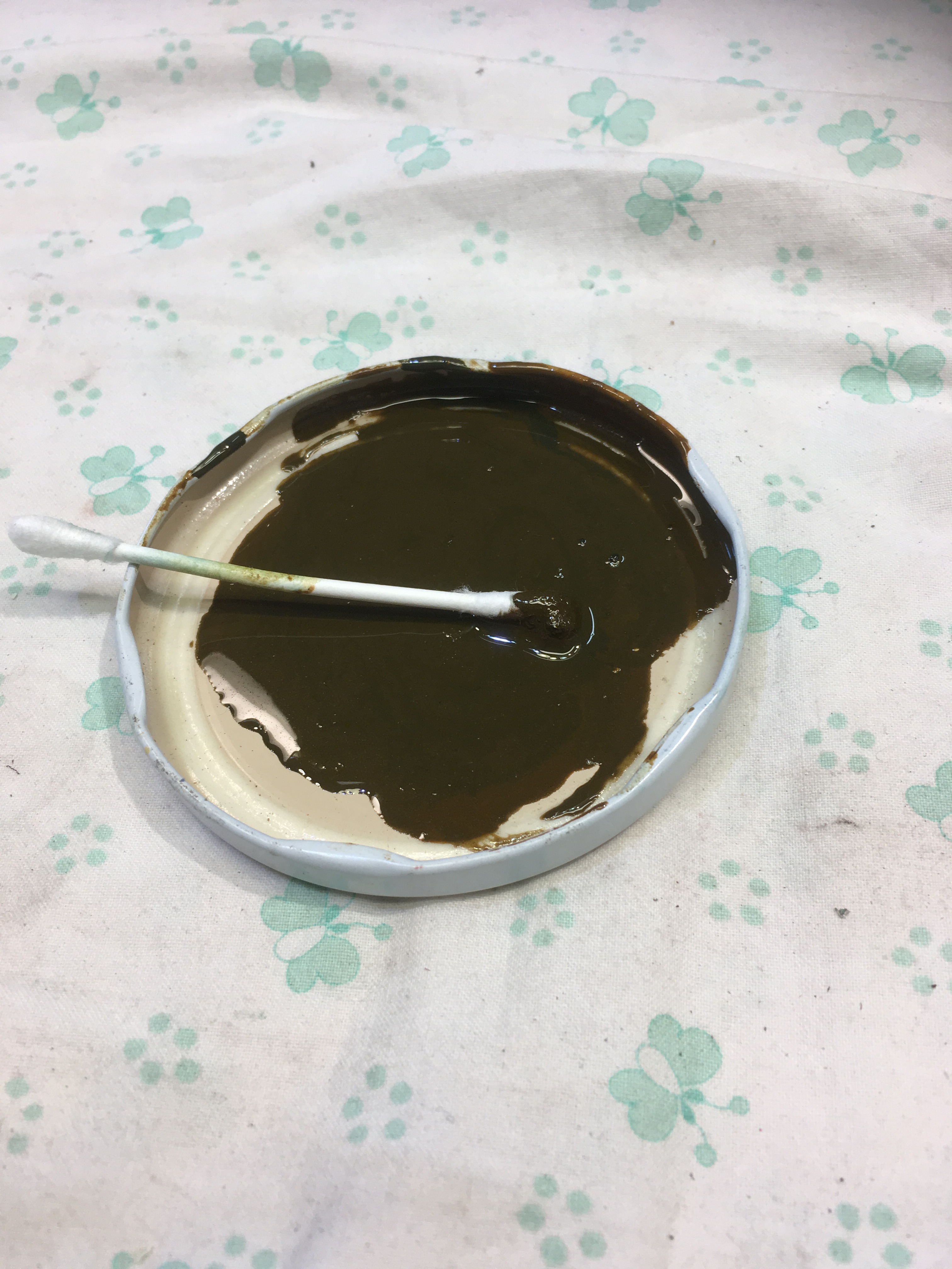 Maali oli helppo poistaa asetoniin kostutetulla rätillä pyyhkimällä.