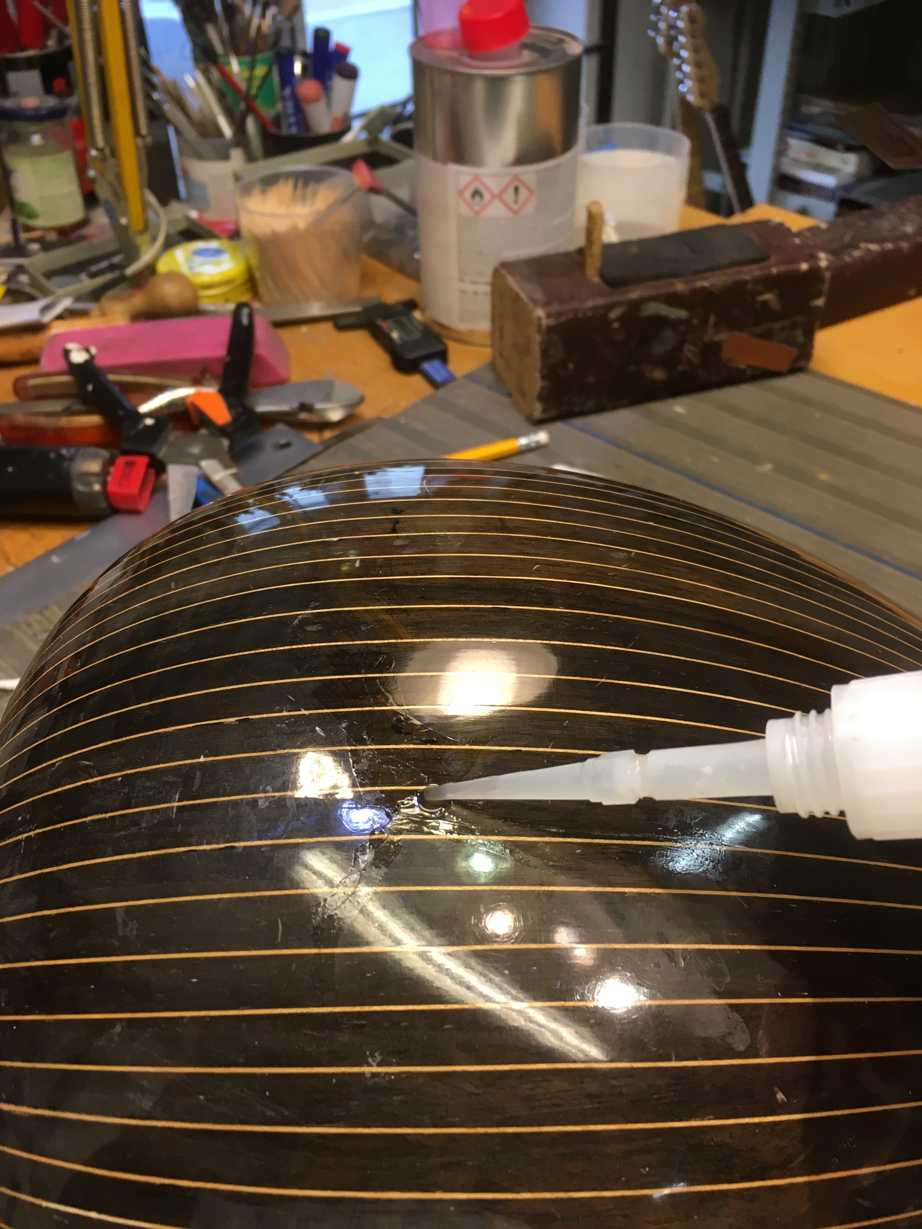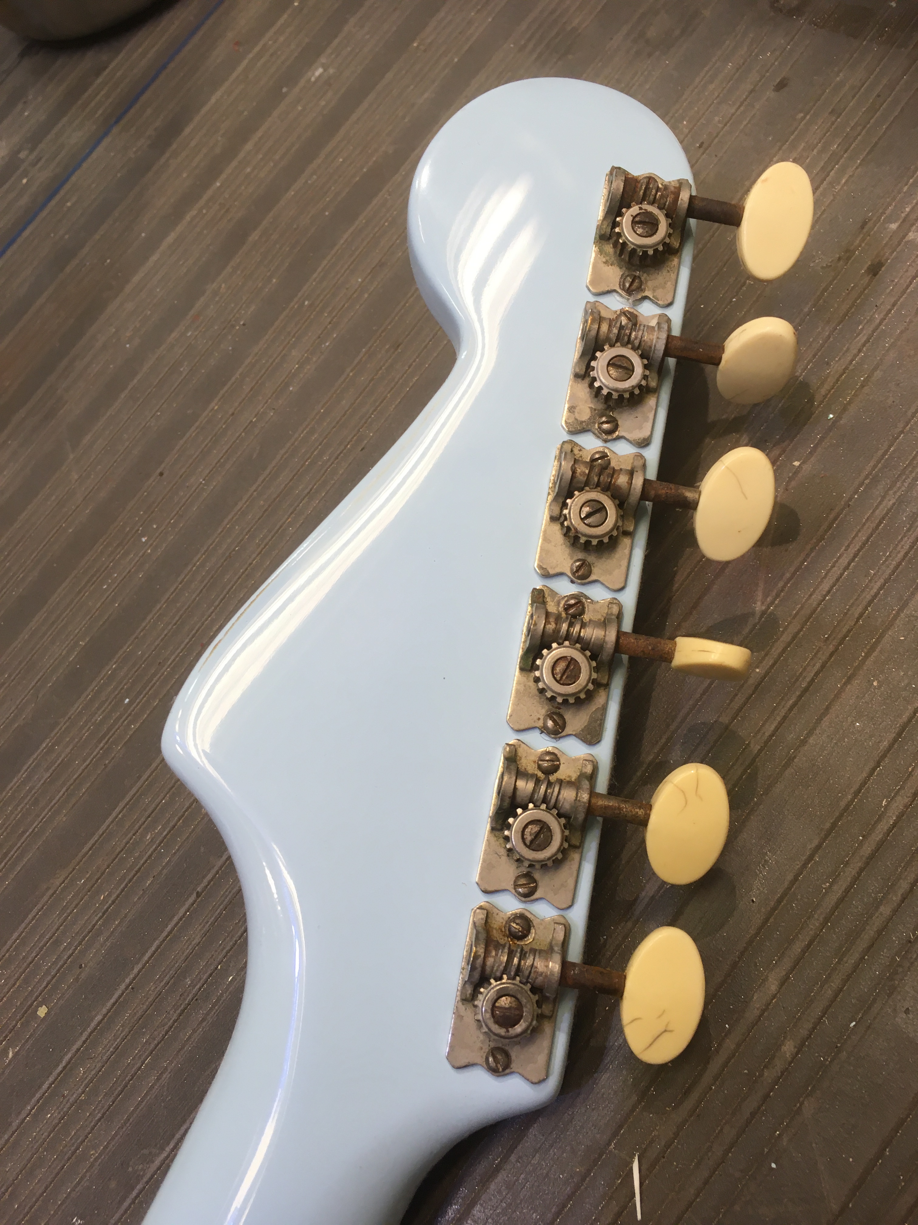 Kolmas Fender tuli maalattavaksi, koska siinä oli midimikrofonin asennuksen jäljiltä ylimääräisiä ruuvinreikiä kannessa.