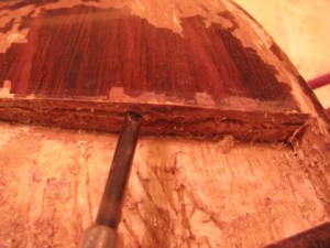 aikaisemmin ja liimattu kontaktiliimalla huonolla menestyksellä. Nyt se oli irtoamispisteessä.