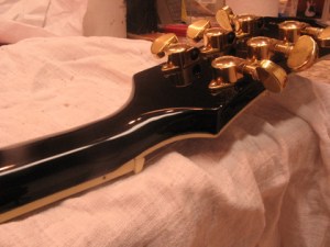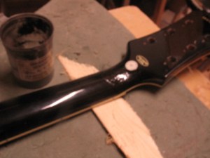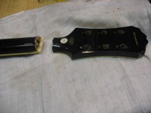 Tässä Epiphonessa oli kaula katkennut ikävästi suoraan poikkisyyhyn.
