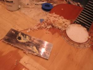 Ohut lasta työnnetään tallan ja kansipuun väliin. (Alä yritä tätä kotona!)