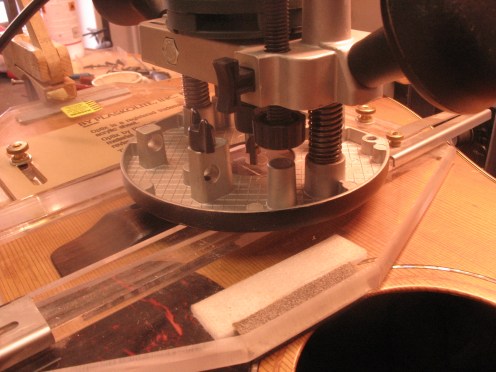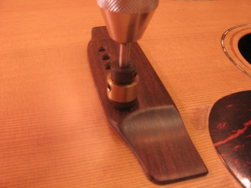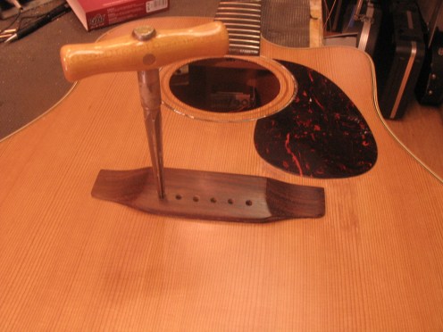 Uuden satulan paikka haetaan viritysmittarin avulla käyttäen apuna puusta valmistettua tilapäistä satulaa.