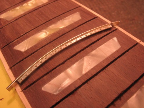 Poiketen muista kitaranvalmistajista Gibson laittaa reunalistan kitaroihinsa vasta nauhojen asennuksen jälkeen. Ylimääräinen listamateriaali raaputetaan pois, reunalista peittää nauhojen päät. On kolme tapaa laittaa uudet nauhat tällaiseen kitaraan: a) nipukat reunalistasta hiotaan pois ja nauha laitetaan listan päälle tai b) uudet nauhat leikataan täsmälleen samanpituiseiksi kuin vanhat, tai c) reunalistat vaihdetaan uusiin ja kaula lakataan samalla uudestaan. b ja c -vaihtoehdoissa kitara säilyy alkuperäisen oloisena, työtä on kuitenkin huomattavasti enemmän kuin a-vaihtoehdossa. Useimmiten noudatetaan a-vaihtoehtoa.