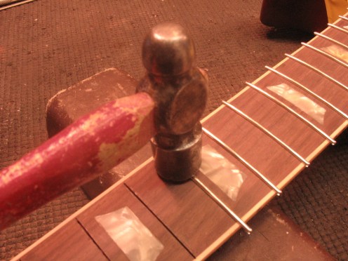 Laitan nauhat paikoilleen perinteisellä vasarametodilla.