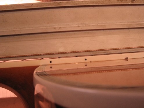 Jäljellä olevien nauhojen päälle asetettu viivoitin näyttää kuinka paljon otelaudasta pitää poistaa materiaalia.