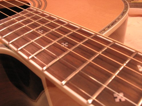 Nauhat laitetaan takaisin paikalleen, hiotaan ja kiillotetaan. Otelauta öljytään ja kitara säädetään.