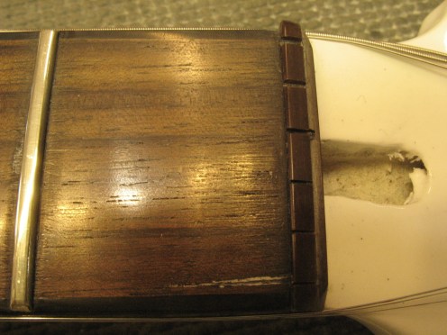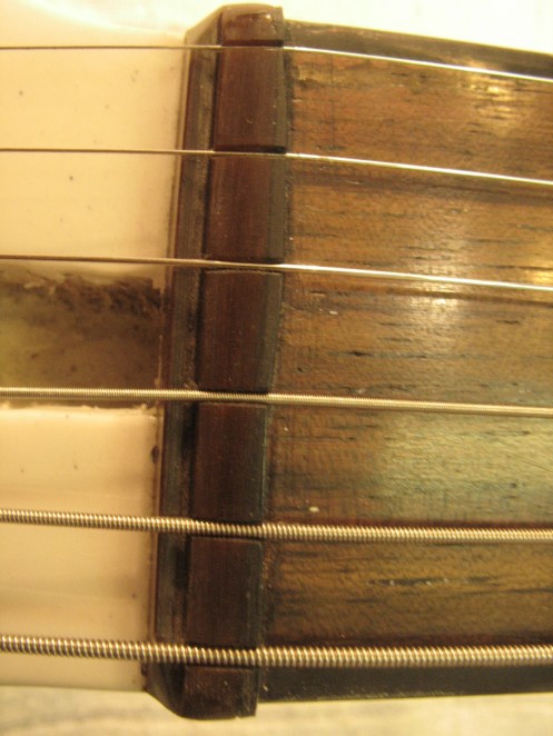Tällä kertaa työn alla oli Radix Custom-kitara. Soittimessa on Fenderin mensuuri, 25,5 tuumaa. Matka yläsatulasta ensimmäiseen nauhaan on 36,4 mm, aivan niinkuin laskennallisesti pitääkin. Soittimessa oli 9-46 -kielisarja. Yläsatulan viimeistelyn jälkeen mitattiin vire toisella nauhalla. Useimmat kielet olivat ylävireessä, eniten G-kieli, joka oli n. 5 centtiä ylävireessä (centti on puolisävelaskeleen sadasosa).