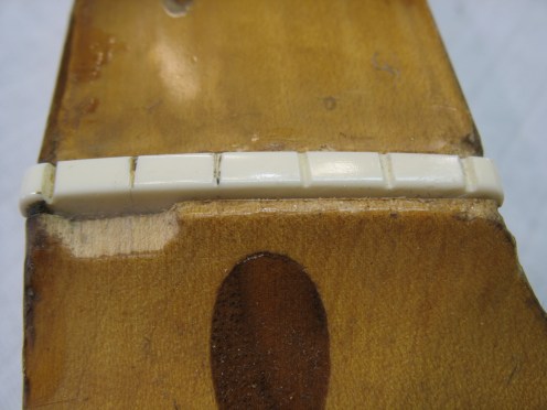 70–luvun Fendereiden työ laatu oli usein heikkoa. Lähikuva tyypilisestä kaulan liitoksesta. Kaulan ja rungon välillä on isoja rakoja.