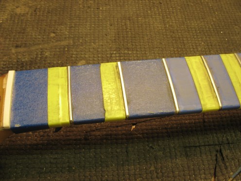 Uudet nauhat paikoillaan. Otelauta on teipattu hiomista varten, tällä kertaa Ruotsin väreillä…