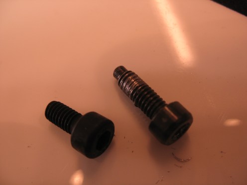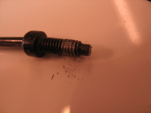 Lukitusruuvin kierteet olivat tuhoutuneet.