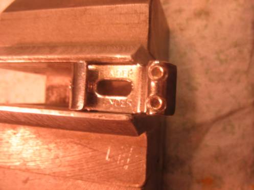 Hienovire on nyt säädetty kohdalleen. Tallapala on säädetty aivan perään asti ja jousi on poistettu. Viilatun uran ansiosta kieli mahtuu tulemaan tallapalasta läpi.