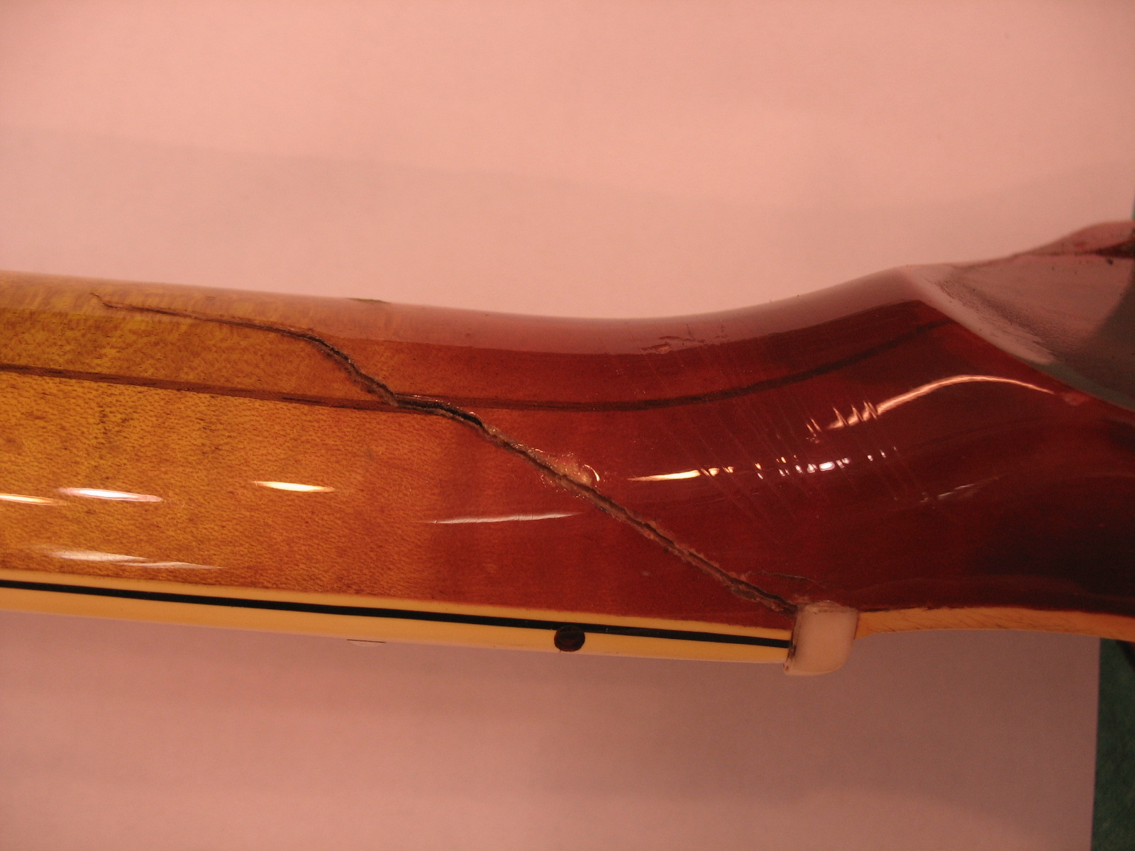 Tämä kyseinen yksilö on tuolta ensimmäiseltä valmistusvuodelta. Kitaran kaula oli jossain vaiheessa murtunut ja sitä oli liimattu huonolla menestyksellä.