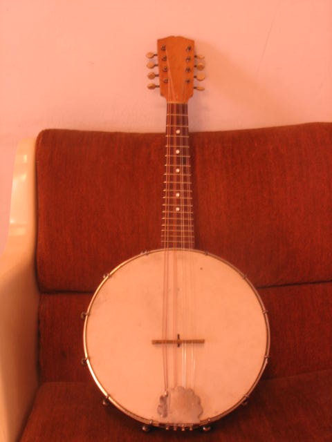 Vanha mandoliinibanjo (banjolin?) kunnostettuna. Soittimella ei ollut varsinaista nimeä, kielenpitimessä oli teksti ”Rima Germany”. Kalvo on vaihdettu uuteen poronnahkaiseen, kaulan kulma on muutettu sopivaksi, nauhat on hiottu.