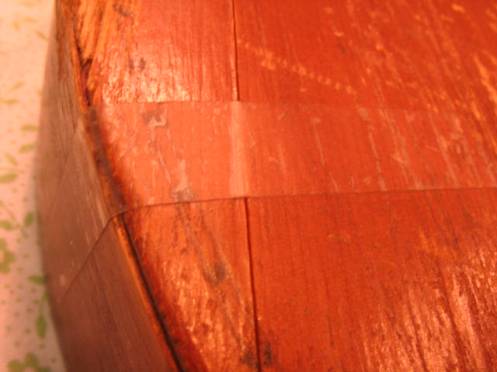 Jossain vaiheessa halkeamia oli yritetty korjata teipillä. Teippi oli vuosien varrella tarttunut tiukasti puuhun. Teipit liotettiin varovasti irti mm. CRC:tä apuna käyttäen.