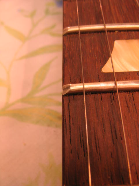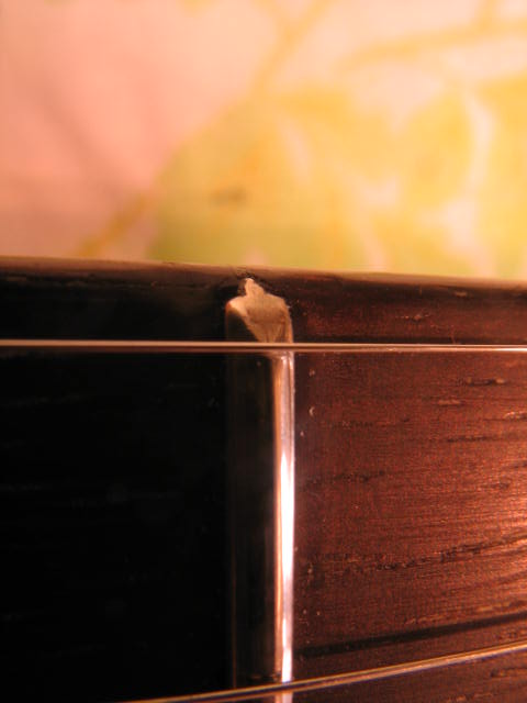 Valitettavasti nauhojen päät oli viilattu liian vinoon, niin että e-kieli lipsui reunan yli. kitara oli käytännössä soittokelvoton.