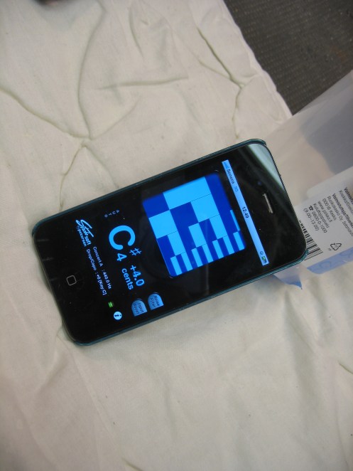 Esimerkkitapauksena on C#-vireeseen (siis puolitoista sävelaskelta normaalin alle) viritetty Schecter. kitara on säädetty kuntoon, kielisarja on .011″ – .050″. Viritysmittarina on älypuhelimeen ladattava mainio Peterson Strobetuner. Ylin C#-kieli on vireessä.
