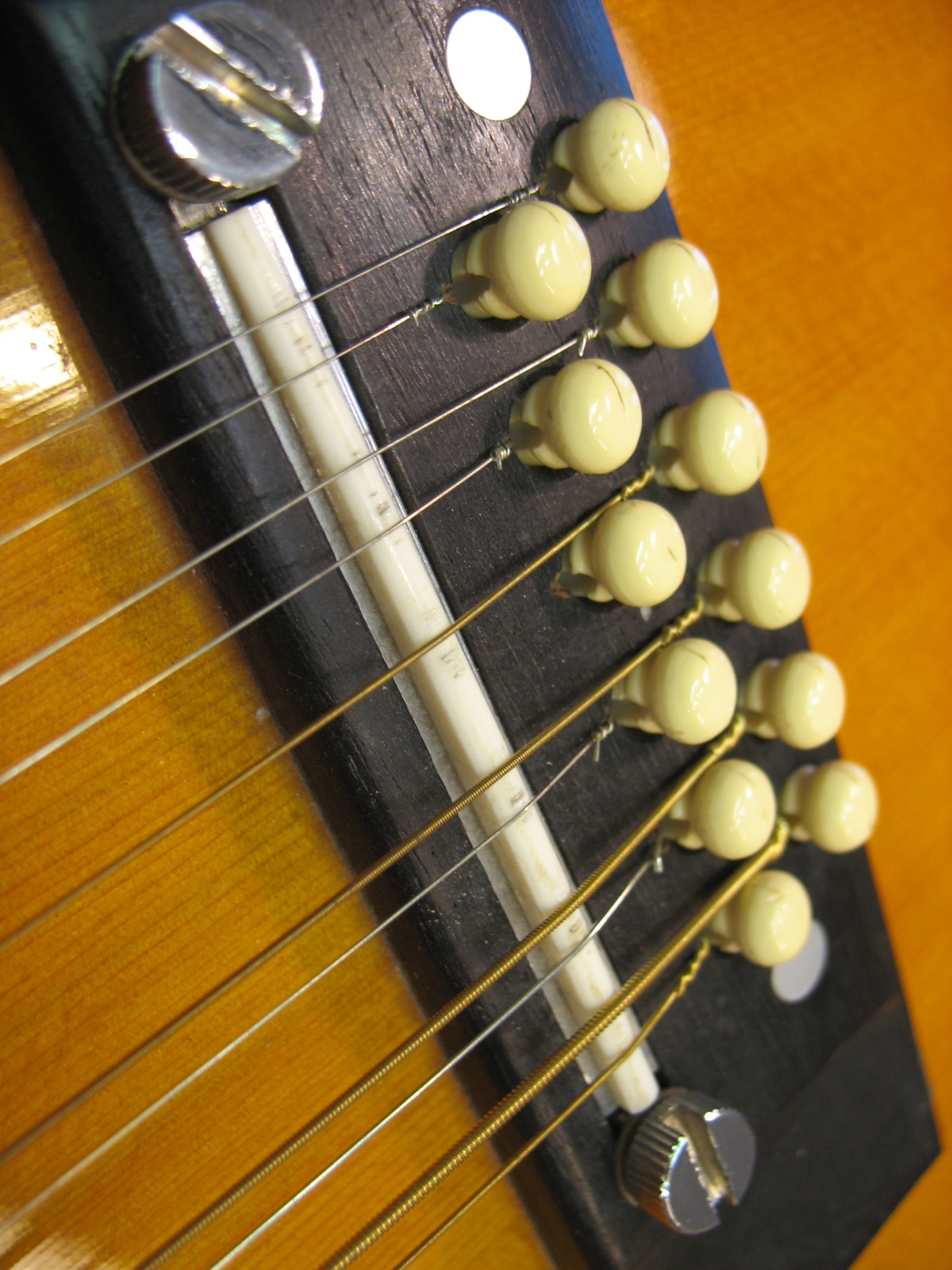 the only problems with this Concord 12-string from the 1970’s was the nut and the saddle. both were made from plastic which sticks to the strings and causes them to go out of tune. Both were replaced with Tusq. After that the guitar plays nicely in tune.