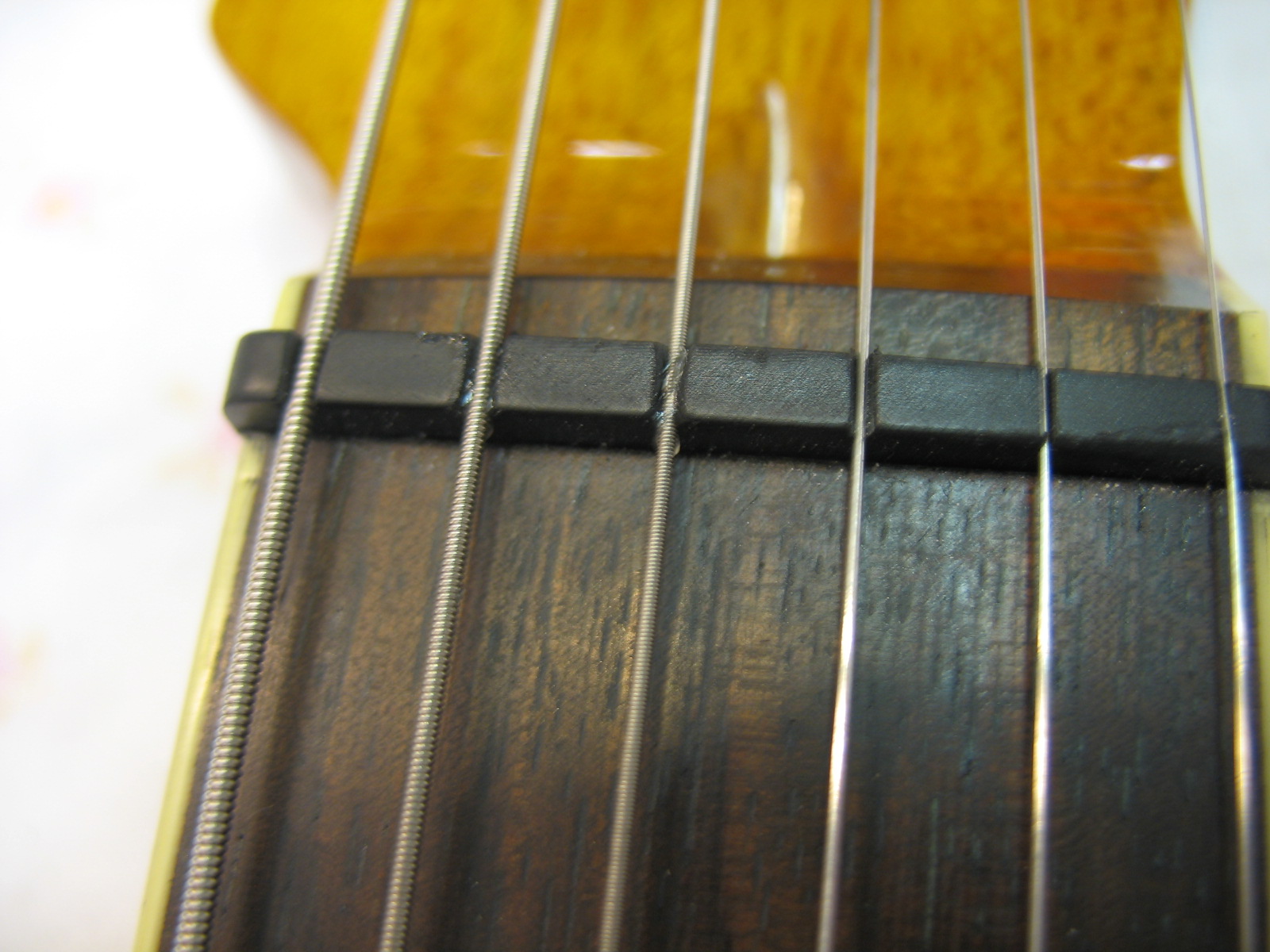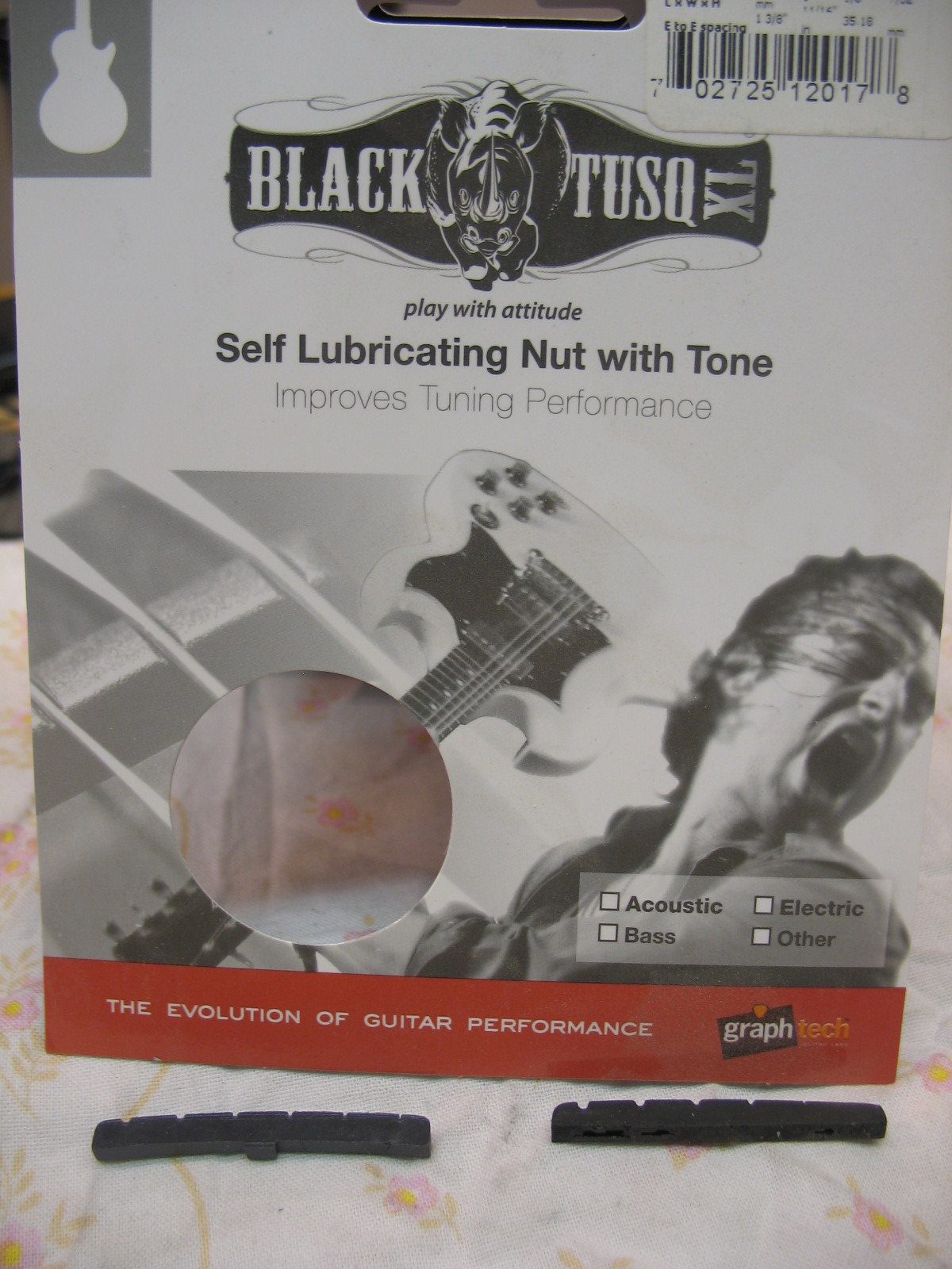 This Indonesian Telecaster wouldn’t stay in tune. After replacing the original nut with Black Tusq the problem dissapeared.