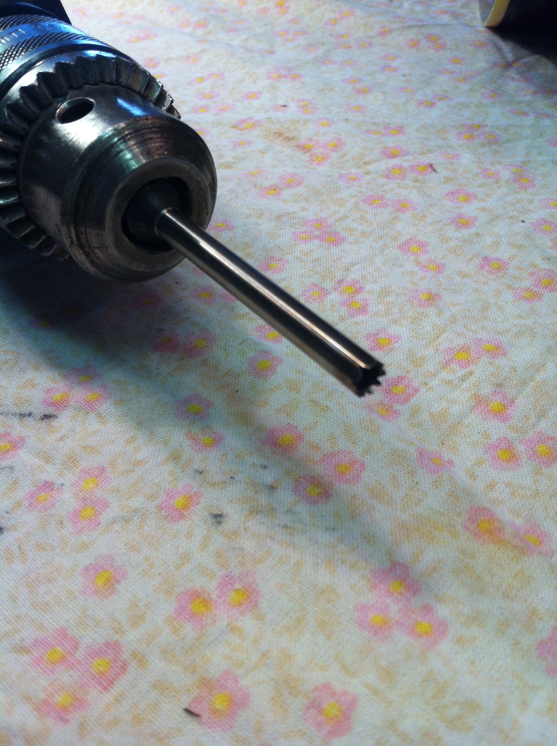 Ruuvi poistetaan tähän tarkoitukseen valmistetulla poralla.Poraksi käy mikä tahansa sopivan paksuinen metalliputki. Putkeen tehdään hammastukset viilalla tai esim. Dremeliin kiinitetyllä pienoislaikalla.