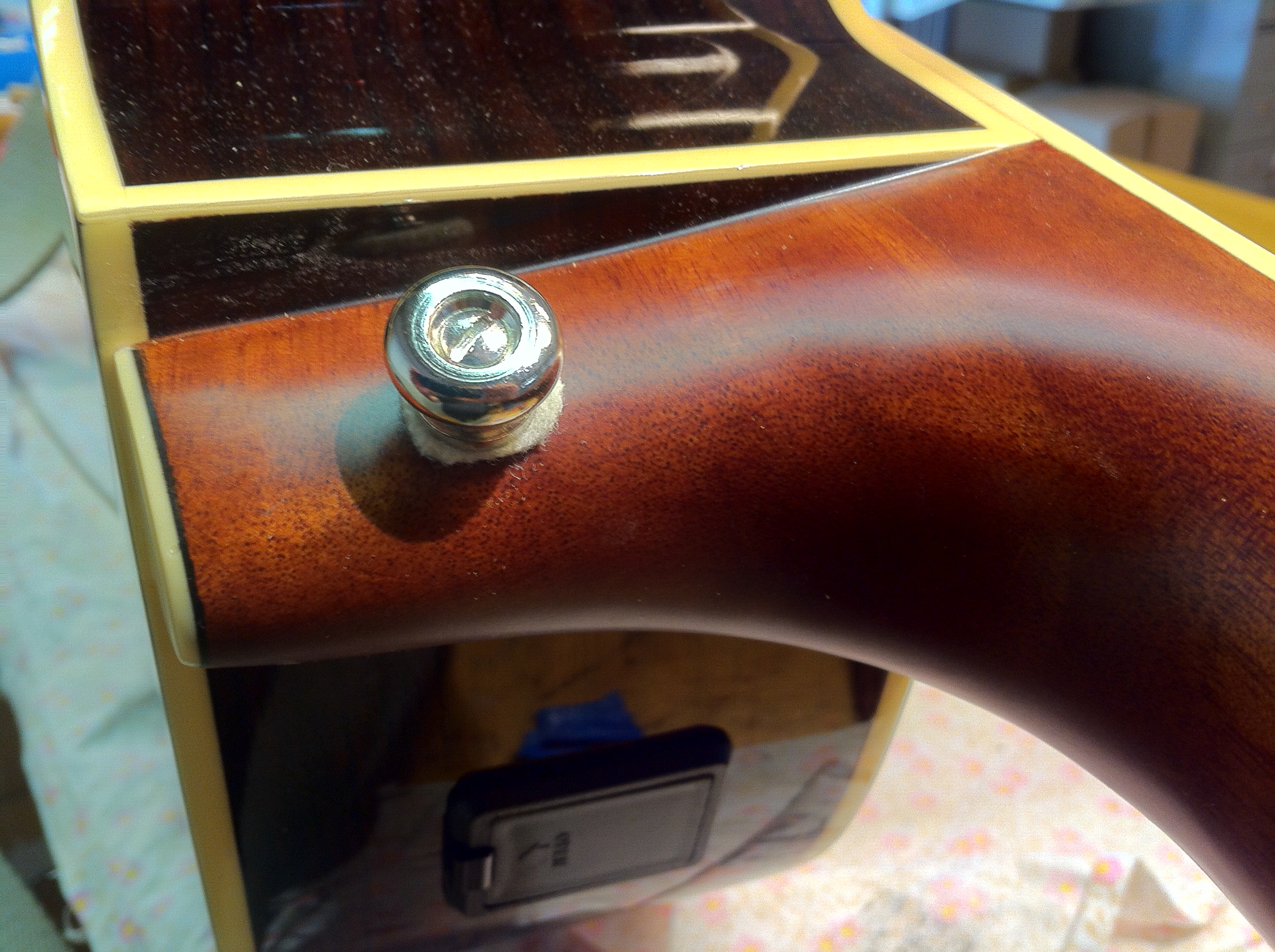 Joskus voi käydä näinkin ikävästi: hihnatappia kaulaan asennettaessa on ruuvi katkennut. Puun sisällä on n. 2cm ruuvia. uutta ruuvia on hankala kiinnittää vanhan viereen. Parasta on poistaa puun sisälle jäänyt osa.