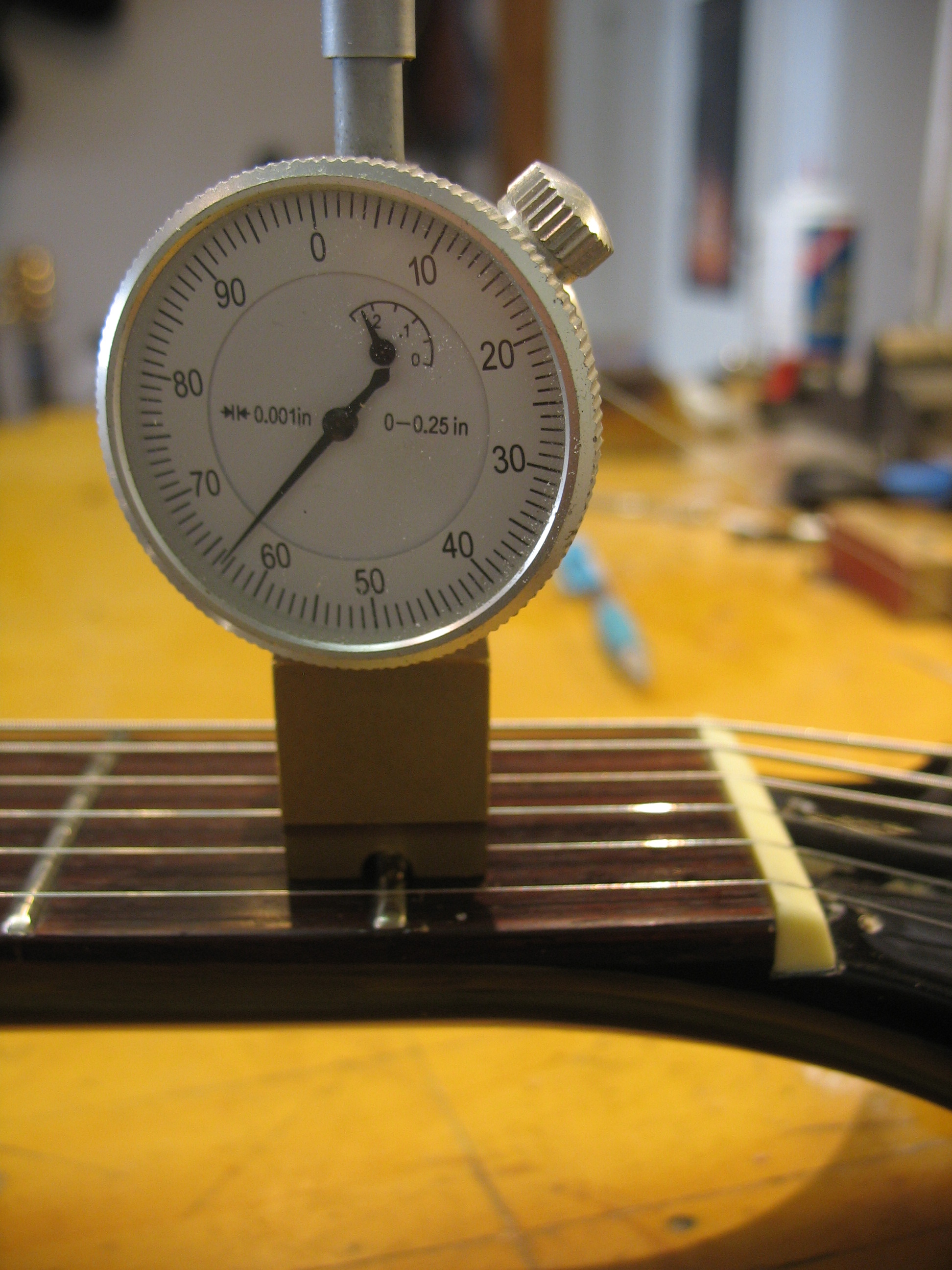 Seuraavaksi säädetään kielten korkeus tallassa ja kielikohtainen hienovire.