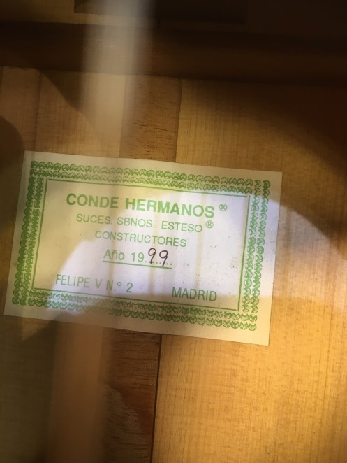 Tuntuu että erityisesti espanjalaiset eivät ole kovin tarkkoja vireen suhteen. Tässäkin muuten hienossa Conde Hermanos-kitarassa ei ollut tallassa kompensointia lainkaan, eli ylempää kaulalla kaikki äänet olivat ylävireisiä.