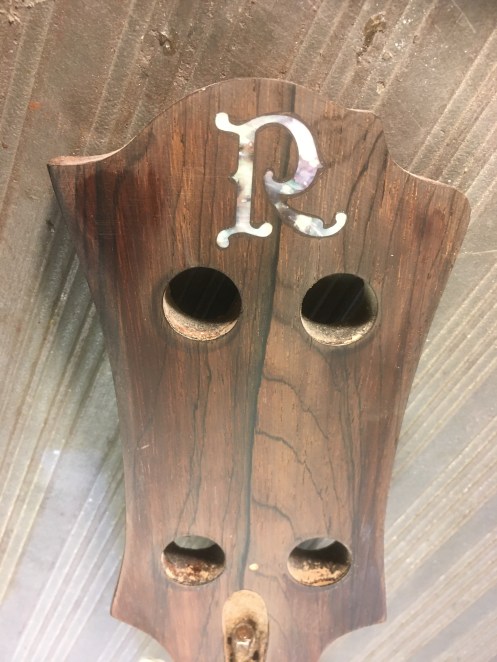 Tämän B.C. Rich Eagle -basson lapa oli aikoinaan korjattu ja lapaviilu oli samalla uusittu.  Alkuperäinen helmiäislogo oli samalla vaihtunut valkoiseen tarraan. Nyt haluttiin palauttaa soitin alkuperäistä vastaavaksi.