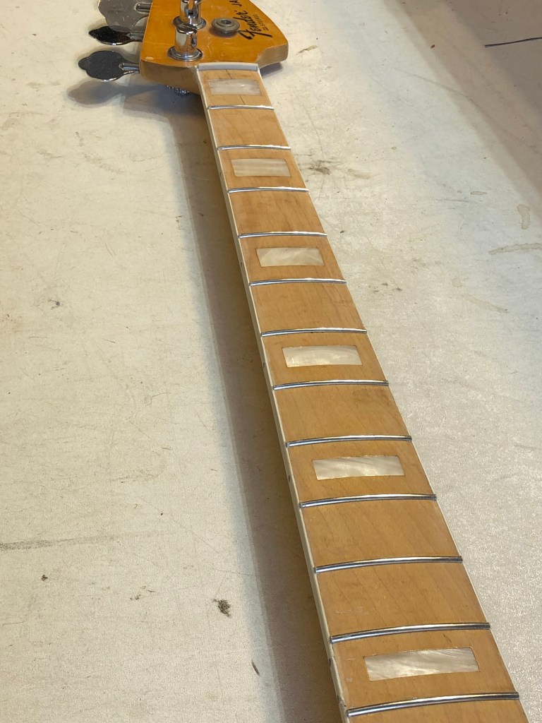 Basso on valmis. Kaularauta toimii moitteettomasti, otelauta on suora. Seuraavat 45 vuotta mennään näillä nauhoilla.